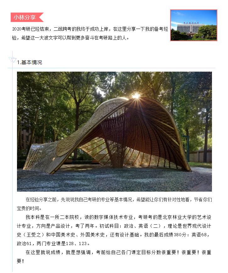 【考研經(jīng)驗分享】“二戰(zhàn)”跨考北京林業(yè)大學(xué)藝術(shù)設(shè)計碩士成功上岸分享