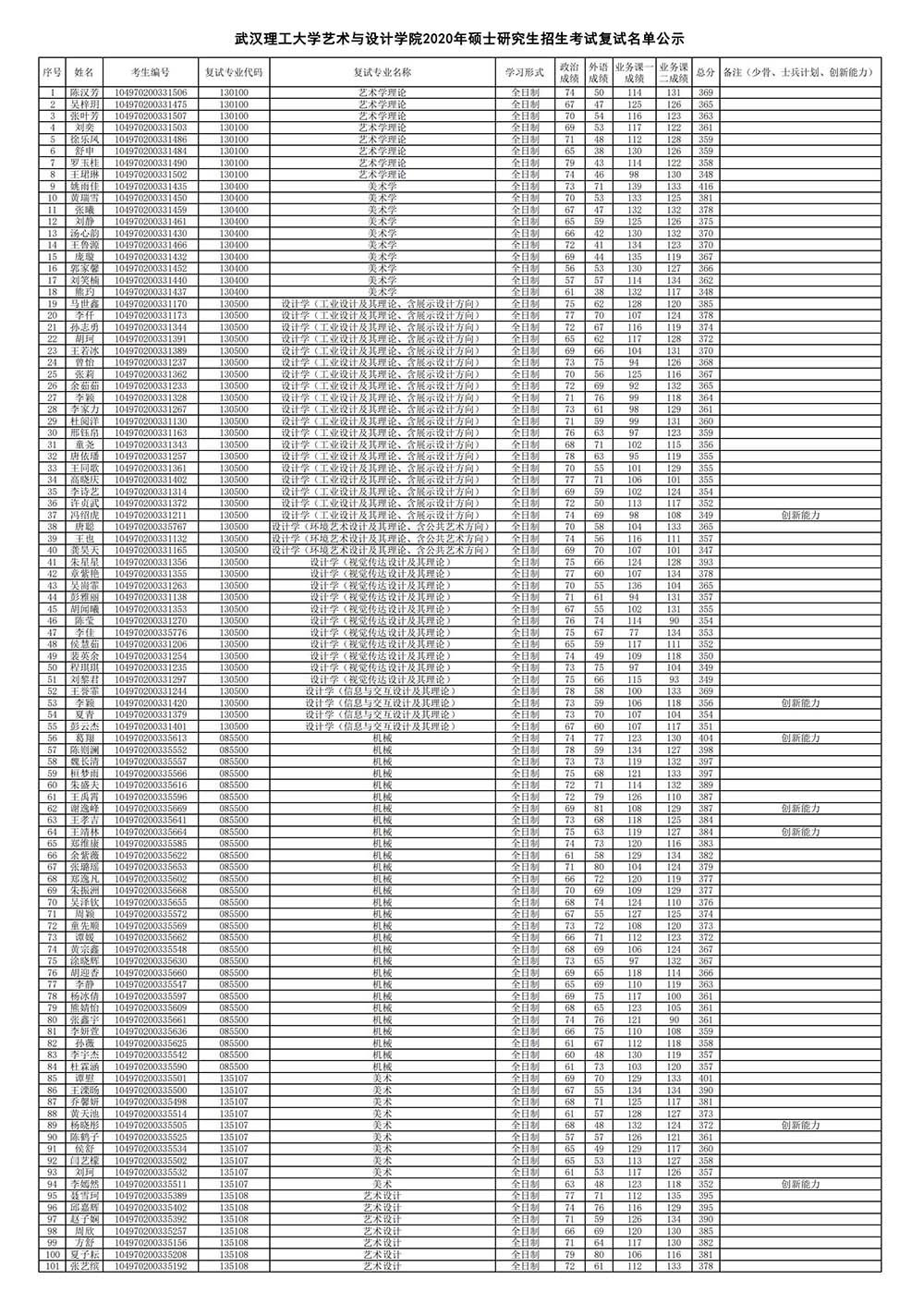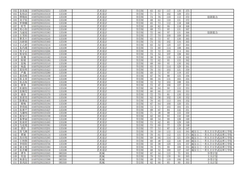 武漢大理工大學(xué)藝術(shù)設(shè)計(jì)學(xué)院2020年考研復(fù)試名單公布