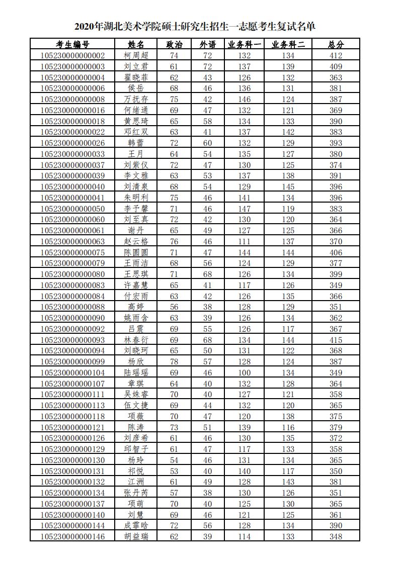 湖北美術學院2020年考研復試分數(shù)線及復試名單公布