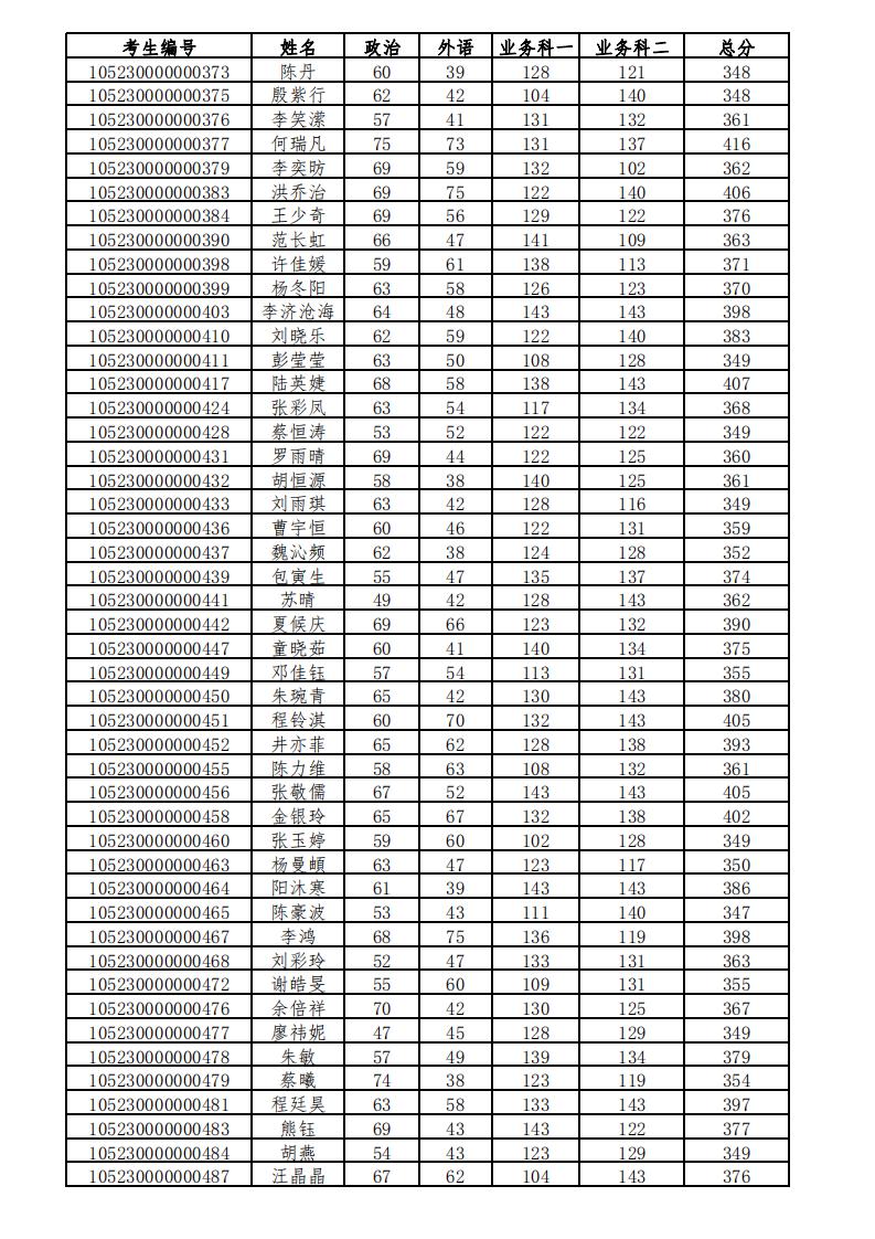 類別 | 學科、專業(yè)學位名稱 | 總分 | 單科(政治、外語) 滿分=100分 | 單科(業(yè)務課一、業(yè)務課二) 滿分=150分 |