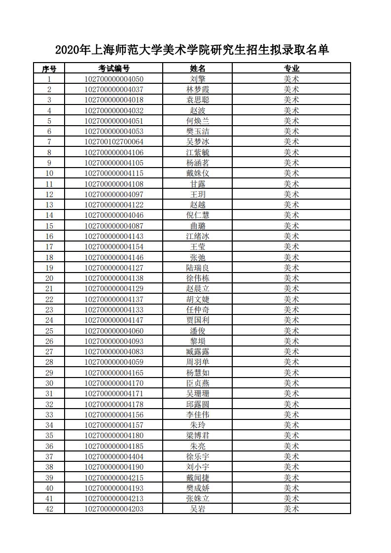 上海師范大學美術學院2020年考研錄取名單公示 發(fā)布時間:2020-05-19 上海師范大學美術學院2020年考研錄取名單公示 上一篇:上海師范大學美術學院2020年考研復試分數(shù)線公布 下一篇:上海師范大學美術學院2021年考研招生目錄及參考書目