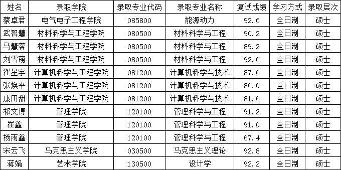 天津理工大學2020年考研保研錄取名單