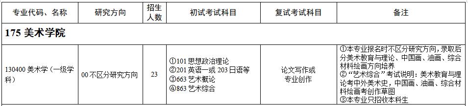 浙江師范大學(xué)美術(shù)學(xué)院2021年考研招生目錄及參考書(shū)目 發(fā)布時(shí)間:2020-09-16 663藝術(shù)概論:藝術(shù)學(xué)概論,彭吉象,北京大學(xué)出版社,2006年版;藝術(shù)概論,王宏建,文化藝術(shù)出版社,2000年版863藝術(shù)綜合:中國(guó)美術(shù)簡(jiǎn)史/外國(guó)美術(shù)簡(jiǎn)史,中央美院中、外美史教研室編,中國(guó)青年出版社 上一篇:浙江師范大學(xué)美術(shù)學(xué)院簡(jiǎn)介 下一篇:浙江師范大學(xué)美術(shù)學(xué)院2021年考研考試大綱:863藝術(shù)綜合