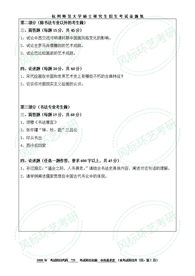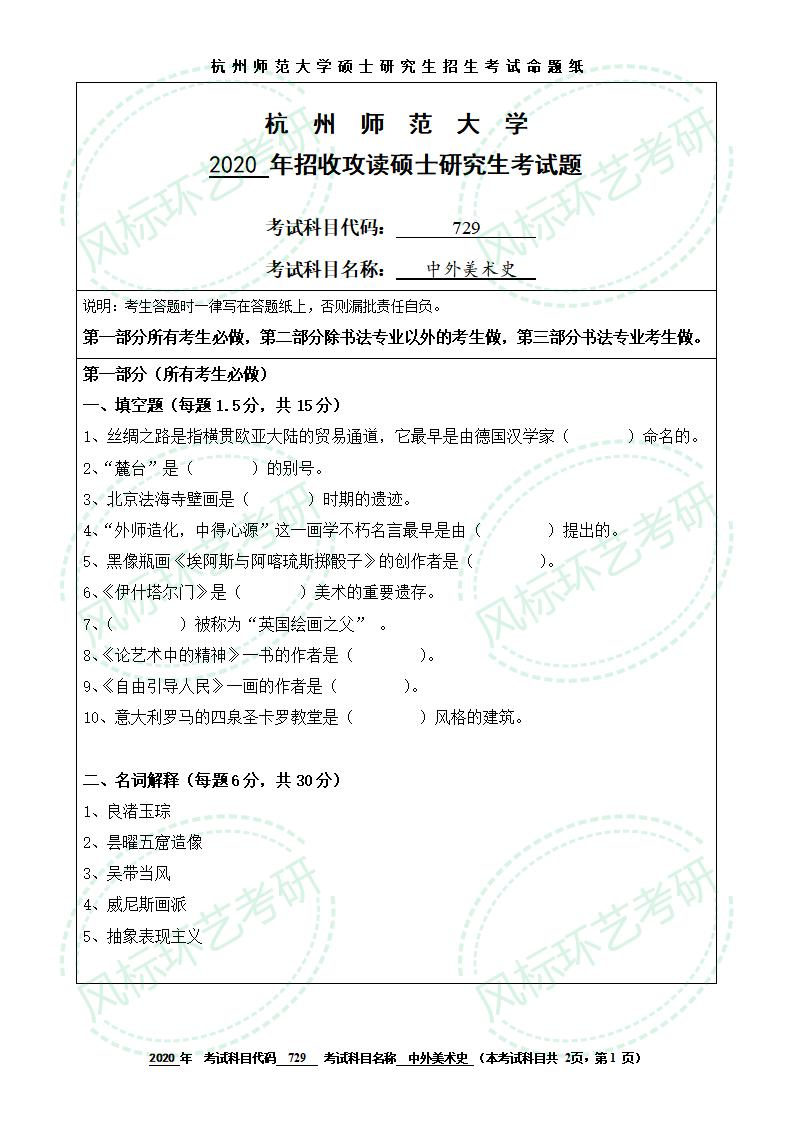 杭州師范大學(xué)美術(shù)學(xué)院2020年考研真題:729中外美術(shù)史 發(fā)布時間:2020-12-23 上一篇:杭州師范大學(xué)美術(shù)學(xué)院2020年考研真題:730美術(shù)史論(一) 下一篇:杭州師范大學(xué)美術(shù)學(xué)院2020年考研真題:845美術(shù)史論(二)