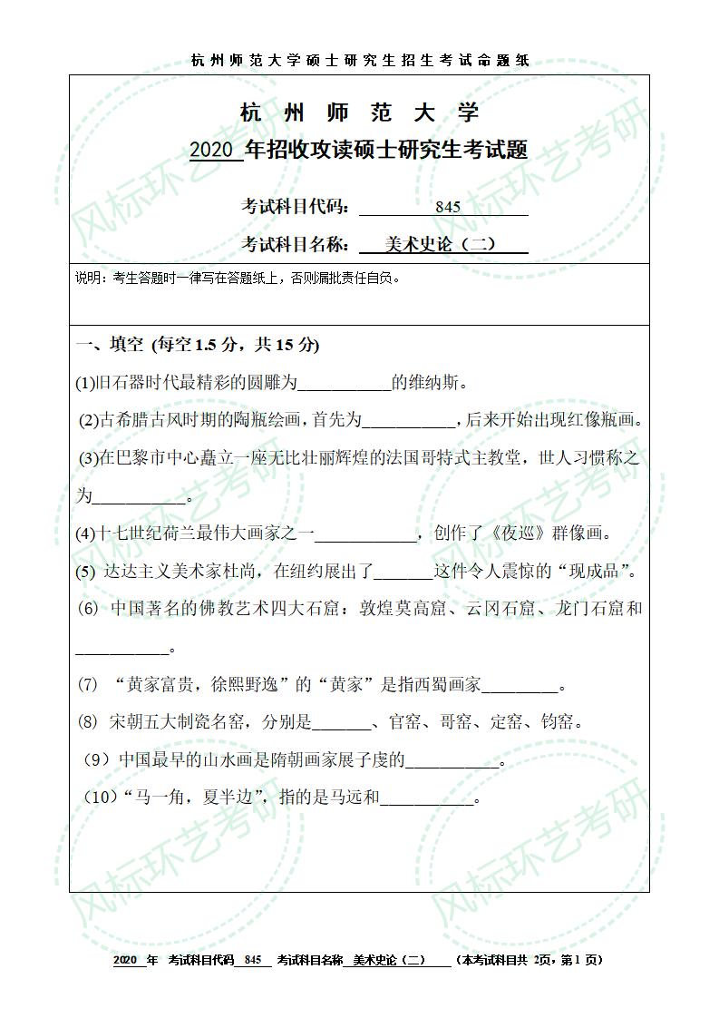 杭州師范大學(xué)美術(shù)學(xué)院2020年考研真題:845美術(shù)史論(二) 發(fā)布時間:2020-12-23 上一篇:杭州師范大學(xué)美術(shù)學(xué)院2020年考研真題:729中外美術(shù)史 下一篇:杭州師范大學(xué)美術(shù)學(xué)院2020年考研真題:846藝術(shù)概論