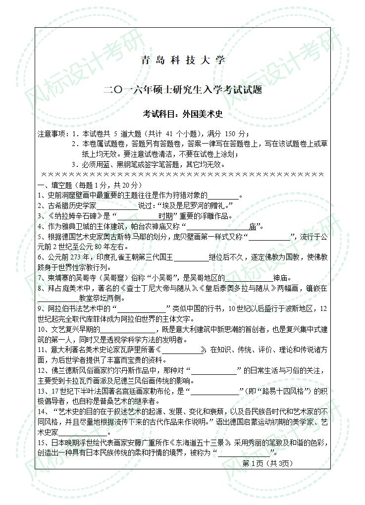 青島科技大學(xué)藝術(shù)學(xué)院2016年考研真題:876外國美術(shù)史 發(fā)布時間:2019-09-01 上一篇:青島科技大學(xué)藝術(shù)學(xué)院2020年考研錄取名單公示 下一篇:青島科技大學(xué)藝術(shù)學(xué)院2017年考研真題:876外國美術(shù)史