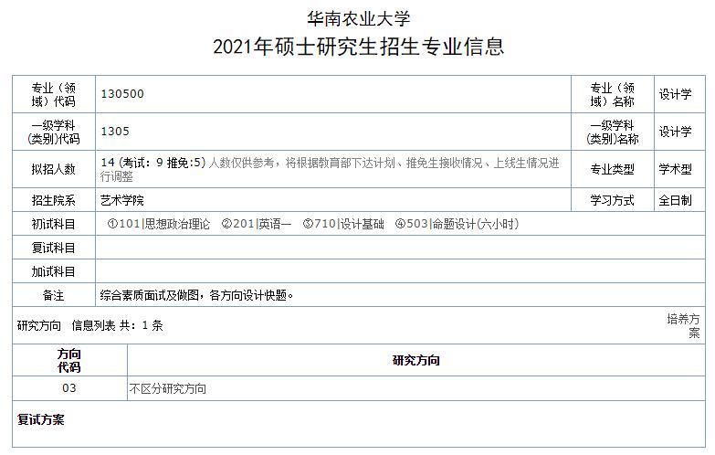 華南農(nóng)業(yè)大學藝術(shù)學院2021年考研招生目錄 發(fā)布時間:2020-09-24 上一篇:華南農(nóng)業(yè)大學藝術(shù)學院簡介 下一篇:華南農(nóng)業(yè)大學藝術(shù)學院2020年考研錄取名公示