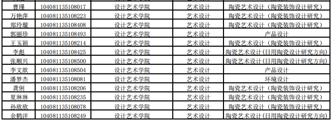 景德鎮(zhèn)陶瓷大學(xué)設(shè)計藝術(shù)學(xué)院2021年考研復(fù)試名單公布 發(fā)布時間:2021-03-25 景德鎮(zhèn)陶瓷大學(xué)設(shè)計藝術(shù)學(xué)院2021年考研復(fù)試名單公布 上一篇:景德鎮(zhèn)陶瓷大學(xué)設(shè)計藝術(shù)學(xué)院2021年考研招生目錄 下一篇:景德鎮(zhèn)陶瓷大學(xué)設(shè)計藝術(shù)學(xué)院2021年考研錄取名單公示