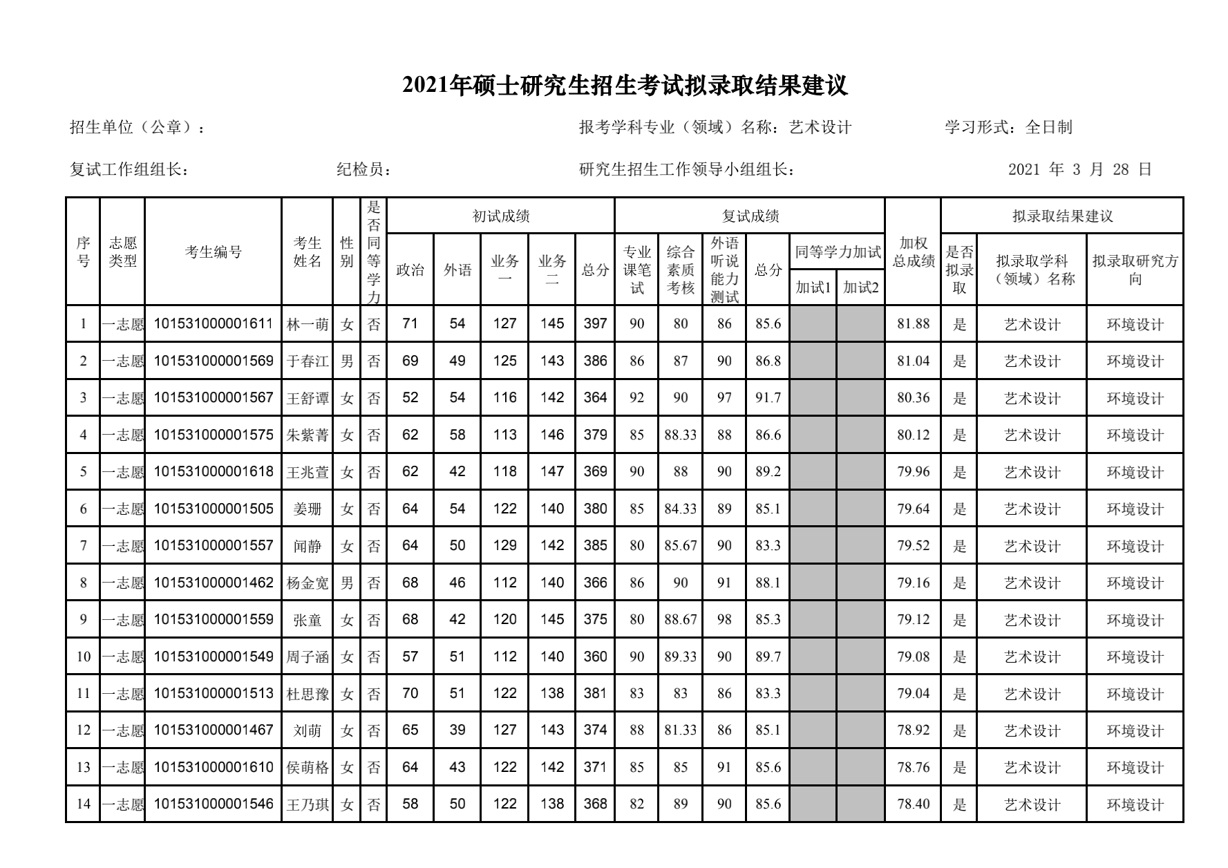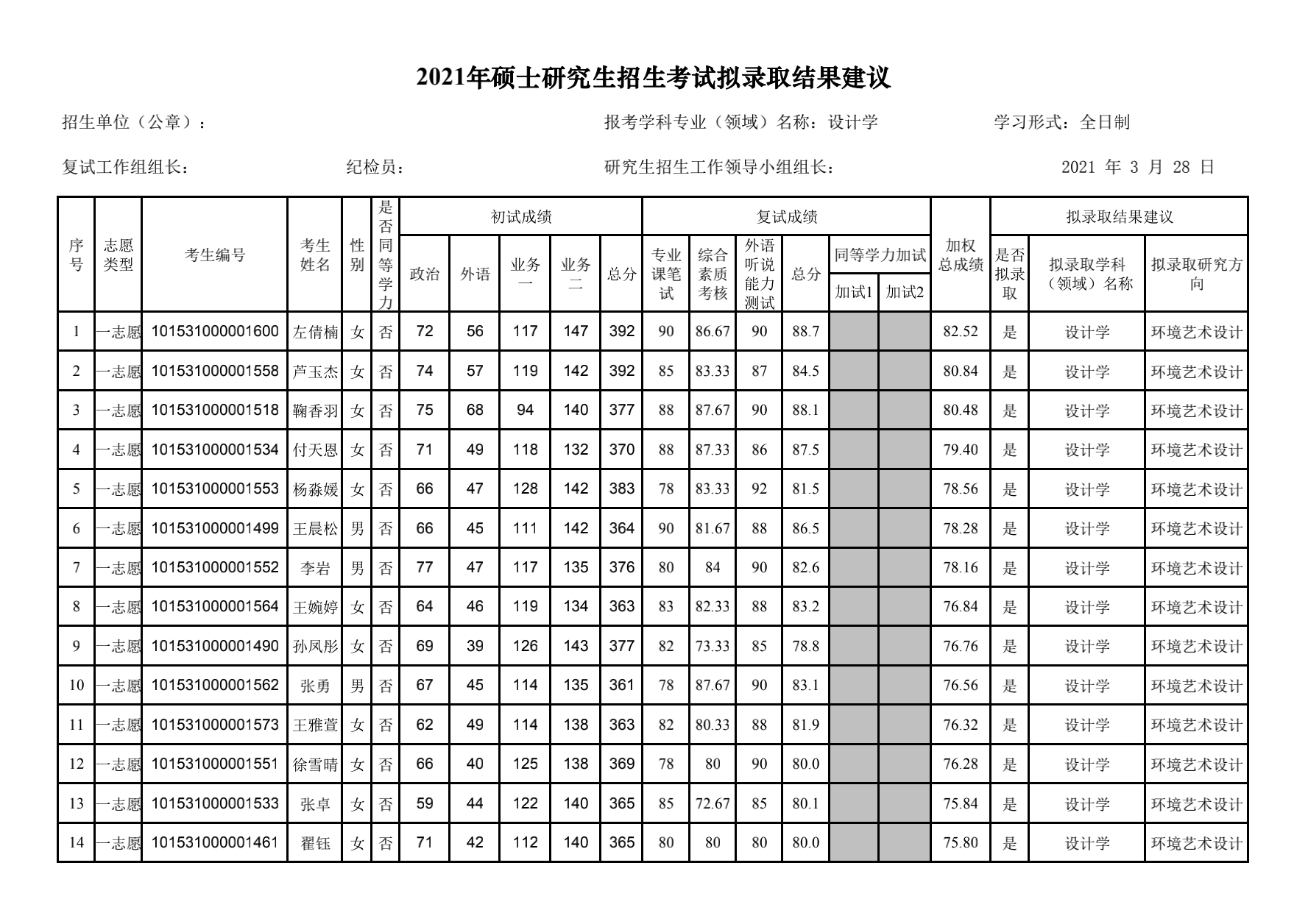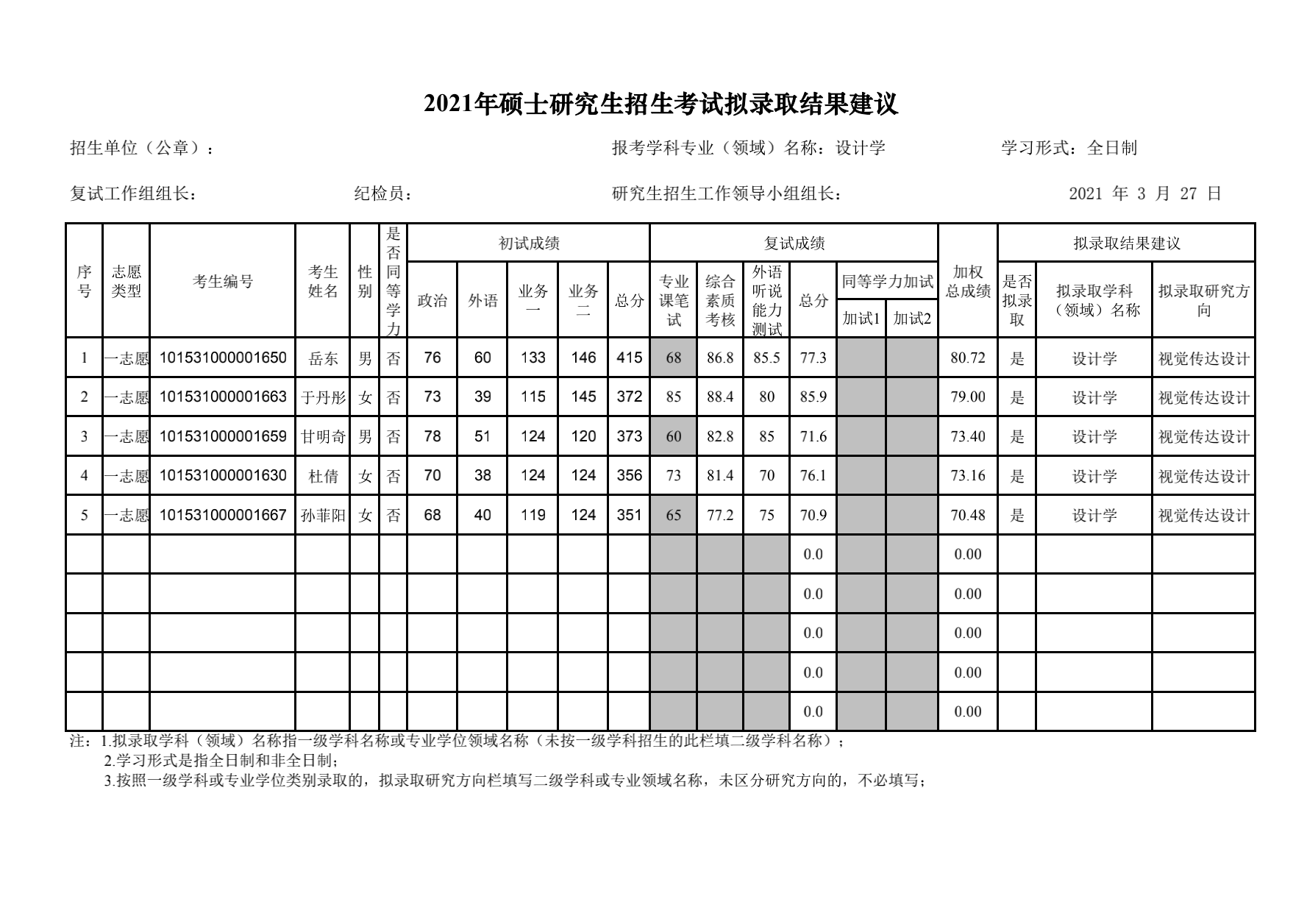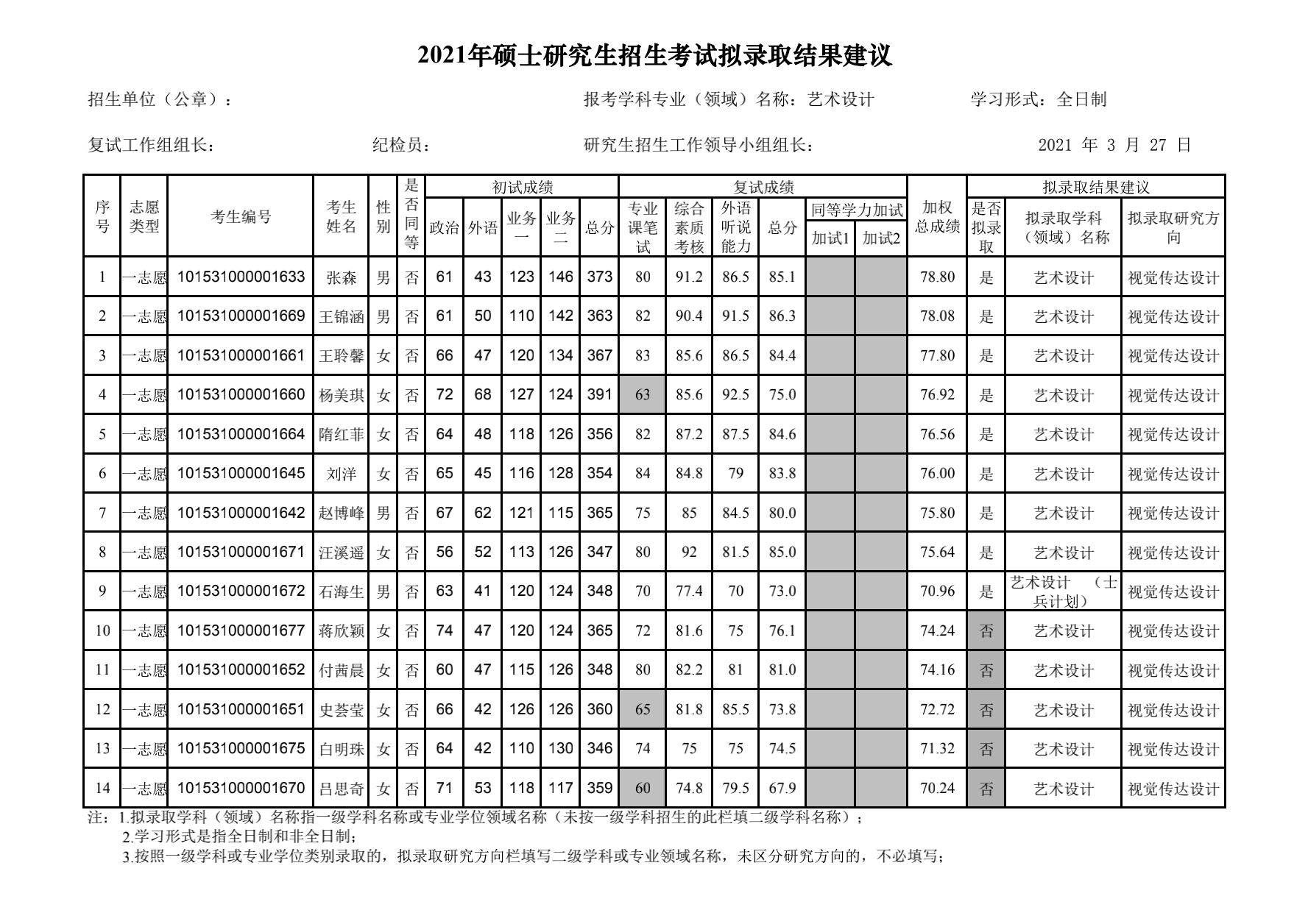 沈陽建筑大學(xué)設(shè)計藝術(shù)學(xué)院2021年考研錄取名單公布 發(fā)布時間:2021-03-27 沈陽建筑大學(xué)設(shè)計藝術(shù)學(xué)院2021年考研錄取名單公布 上一篇:沈陽建筑大學(xué)設(shè)計藝術(shù)學(xué)院2021年考研招生計劃變更 下一篇:沈陽建筑大學(xué)設(shè)計藝術(shù)學(xué)院2022年考研招生目錄