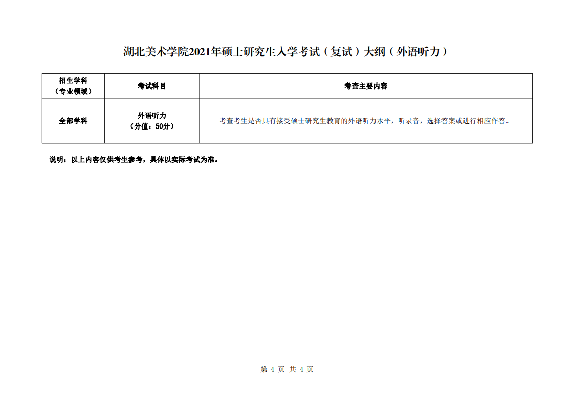 湖北美術(shù)學(xué)院2021年考研復(fù)試考試大綱 發(fā)布時(shí)間:2021-03-08 湖北美術(shù)學(xué)院2021年考研復(fù)試考試大綱 上一篇:湖北美術(shù)學(xué)院工業(yè)設(shè)計(jì)系2021年考研招生目錄 下一篇:湖北美術(shù)學(xué)院2021年考研復(fù)試分?jǐn)?shù)線公布