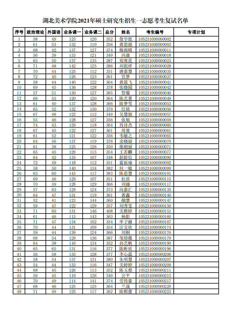 湖北美術(shù)學(xué)院2021年考研復(fù)試名單公布 發(fā)布時間:2021-03-21 湖北美術(shù)學(xué)院2021年考研復(fù)試名單公布 上一篇:湖北美術(shù)學(xué)院2021年考研復(fù)試分?jǐn)?shù)線公布 下一篇:湖北美術(shù)學(xué)院視覺藝術(shù)設(shè)計學(xué)院2022年考研招生目錄