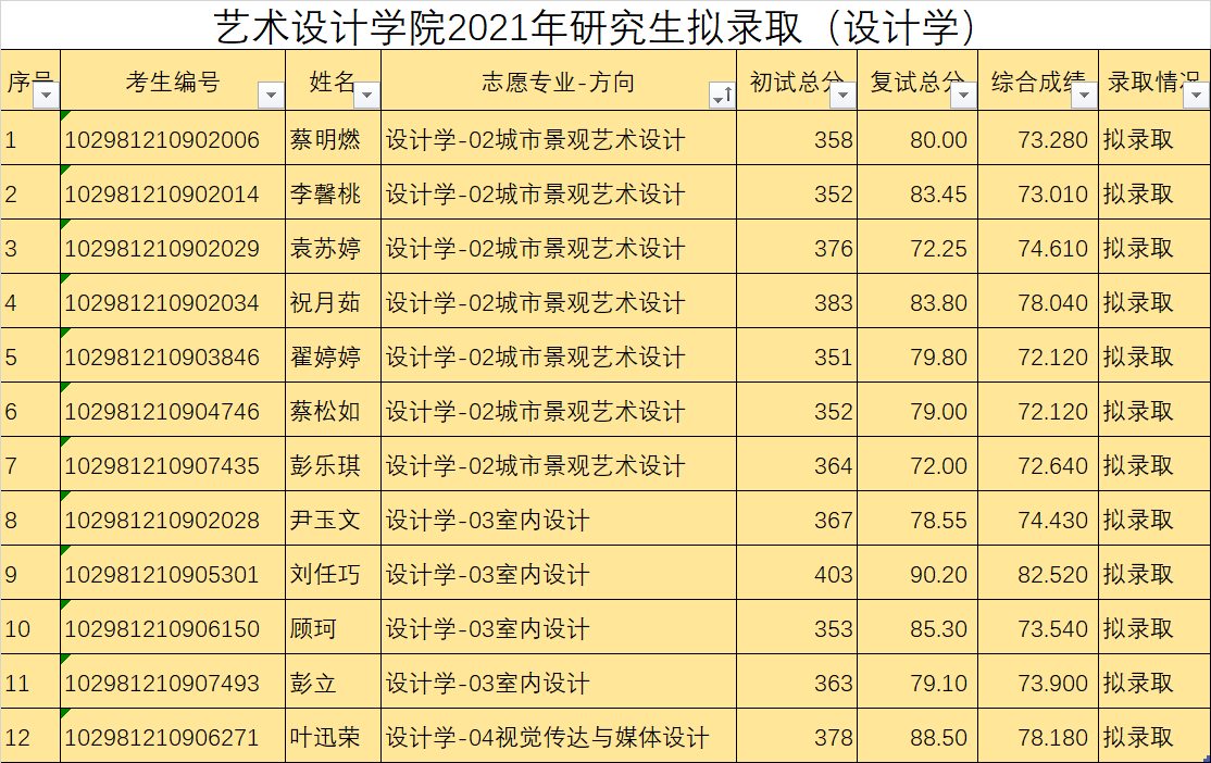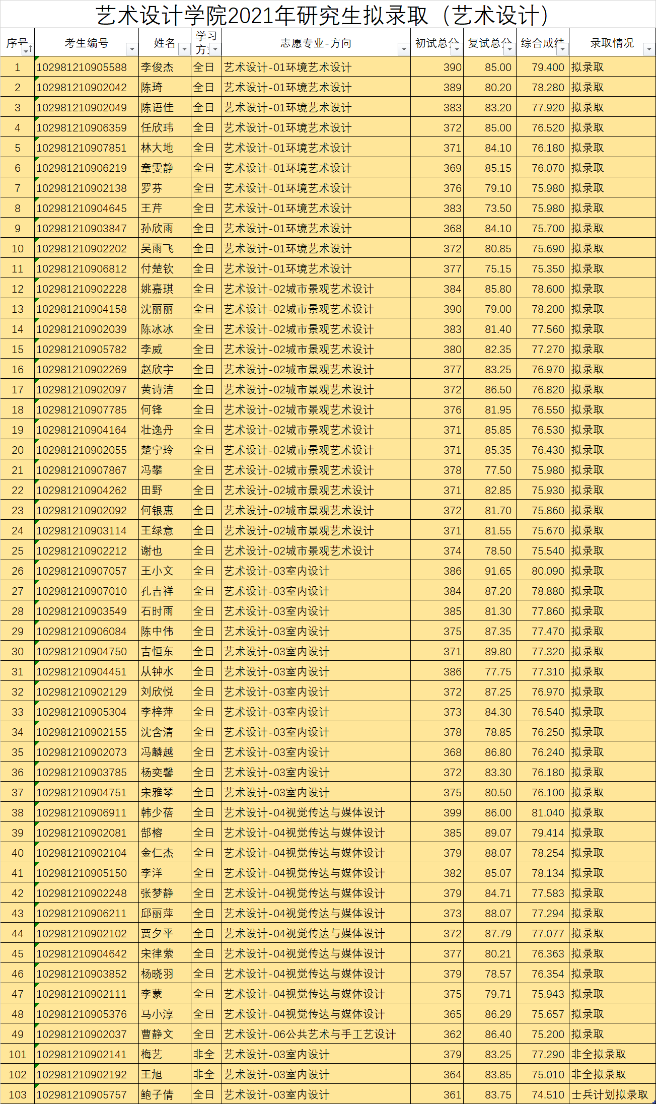 南京林業(yè)大學藝術設計學院2021年考研錄取名單公示 發(fā)布時間:2021-04-02 南京林業(yè)大學藝術設計學院2021年考研錄取名單公示 上一篇:南京林業(yè)大學藝術設計學院2021年考研復試名單公布 下一篇:南京林業(yè)大學家居與工業(yè)設計學院2021年博士研究生信息