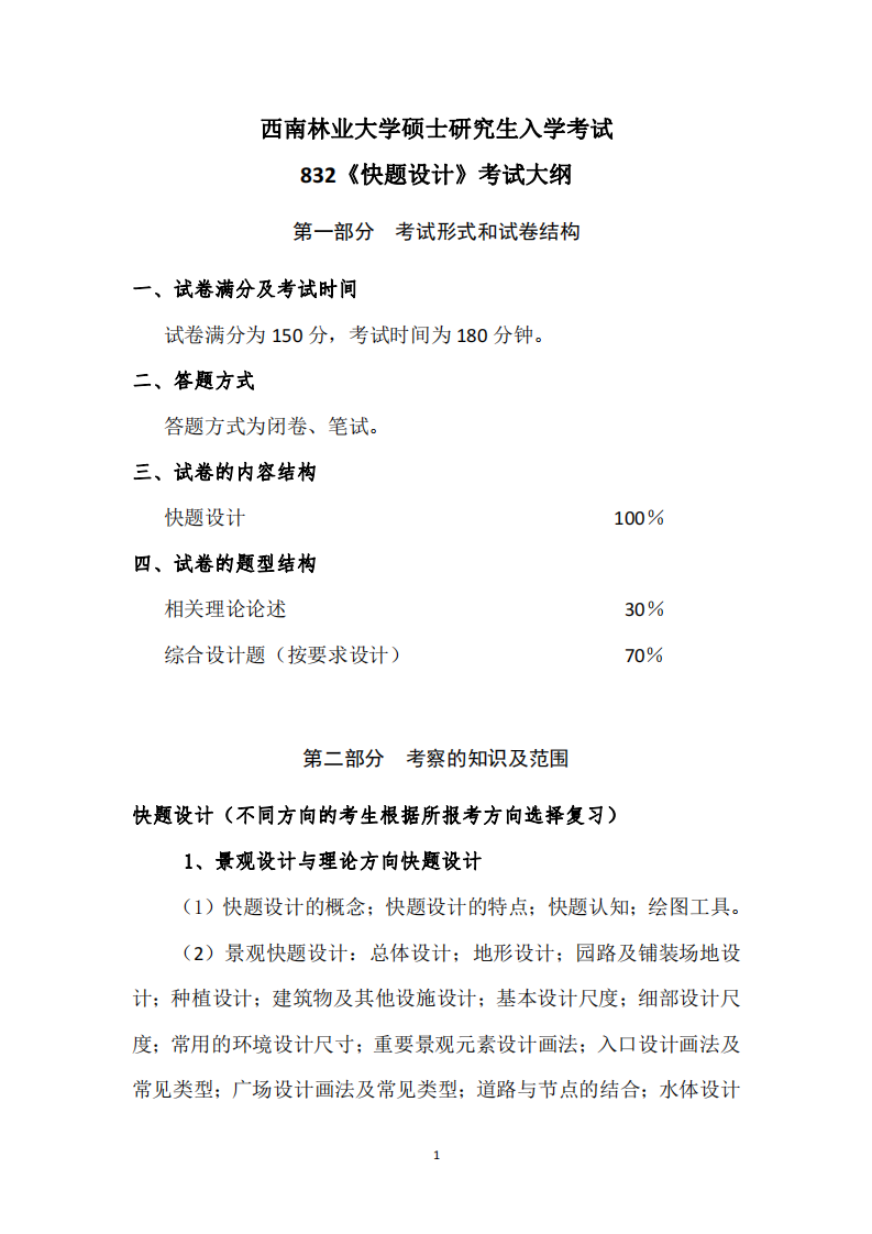 西南林業(yè)大學2021年考研考試大綱-832快題設計 發(fā)布時間:2020-09-18 西南林業(yè)大學2021年考研考試大綱-832快題設計 上一篇:西南林業(yè)大學2021年考研考試大綱-718設計史 下一篇:西南林業(yè)大學2021年推免生(保研)名單公示