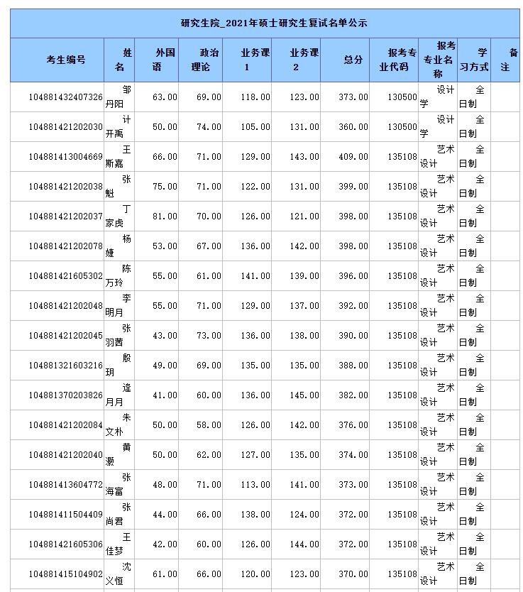 武漢科技大學(xué)藝術(shù)與設(shè)計(jì)學(xué)院2021年考研復(fù)試名單公示