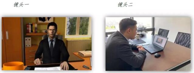 3. 設(shè)備擺放要求:考生端兩臺(tái)設(shè)備開啟攝像頭。一機(jī)位攝像頭對(duì)準(zhǔn)考生本人,要求畫面中可以同時(shí)展現(xiàn)考生完整的面部和手部。二機(jī)位攝像頭從考生后方成45°拍攝,要求畫面中可以展現(xiàn)考場(chǎng)環(huán)境。機(jī)位布置如圖所示。兩個(gè)攝像頭要保證考生及考場(chǎng)環(huán)境能清晰地被復(fù)試專家組看到。