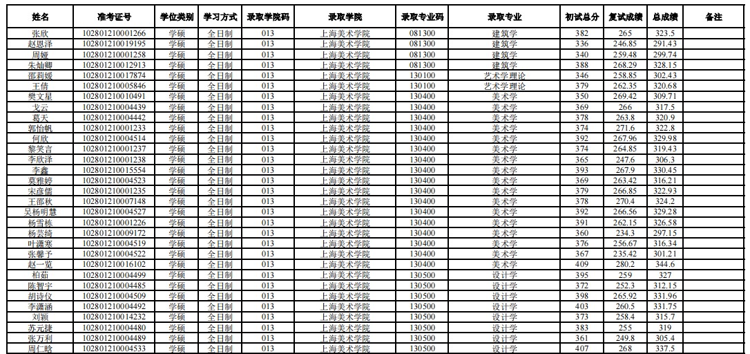 上海大學(xué)美術(shù)學(xué)院2021年考研錄取名單公示 發(fā)布時(shí)間:2021-04-23 上海大學(xué)美術(shù)學(xué)院2021年考研錄取名單公示 上一篇:上海大學(xué)美術(shù)學(xué)院2021年考研復(fù)試安排 下一篇:上海大學(xué)美術(shù)學(xué)院2022年考研招生目錄及參考書(shū)目