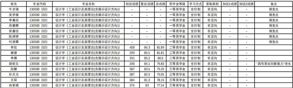 武漢理工大學(xué)2021年設(shè)計學(xué)-工業(yè)設(shè)計考研錄取名單公示 發(fā)布時間:2021-04-20 武漢理工大學(xué)2021年設(shè)計學(xué)-工業(yè)設(shè)計考研錄取名單公示 上一篇:武漢理工大學(xué)2021年機(jī)械-工業(yè)設(shè)計工程考研錄取名單公示 下一篇:武漢理工大學(xué)2021年藝術(shù)設(shè)計考研錄取名單公示