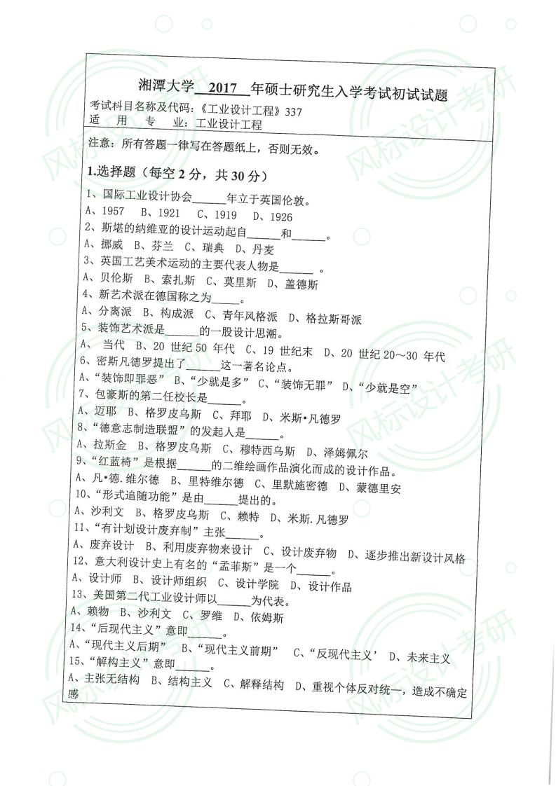 湘潭大學工業(yè)設計考研2017年考研真題(工業(yè)設計工程) 發(fā)布時間:2019-09-01 湘潭大學工業(yè)設計考研2017年考研真題(工業(yè)設計工程) 上一篇:湘潭大學工業(yè)設計考研2017年考研真題(快題設計) 下一篇:湘潭大學藝術學院2020年考研錄取名單公示