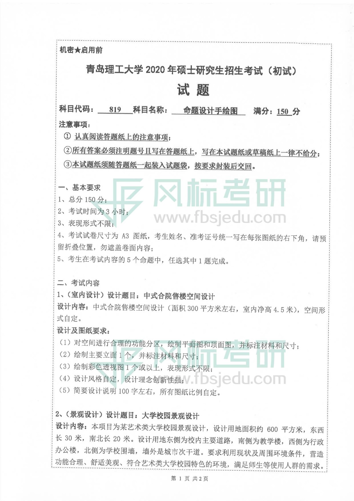 青島理工大學(xué)藝術(shù)設(shè)計學(xué)院2020年考研真題:819命題設(shè)計手繪圖 發(fā)布時間:2021-09-15 上一篇:青島理工大學(xué)藝術(shù)設(shè)計學(xué)院2022年考研招生目錄及參考書目 下一篇:青島理工大學(xué)藝術(shù)設(shè)計學(xué)院2020年考研真題:702設(shè)計史