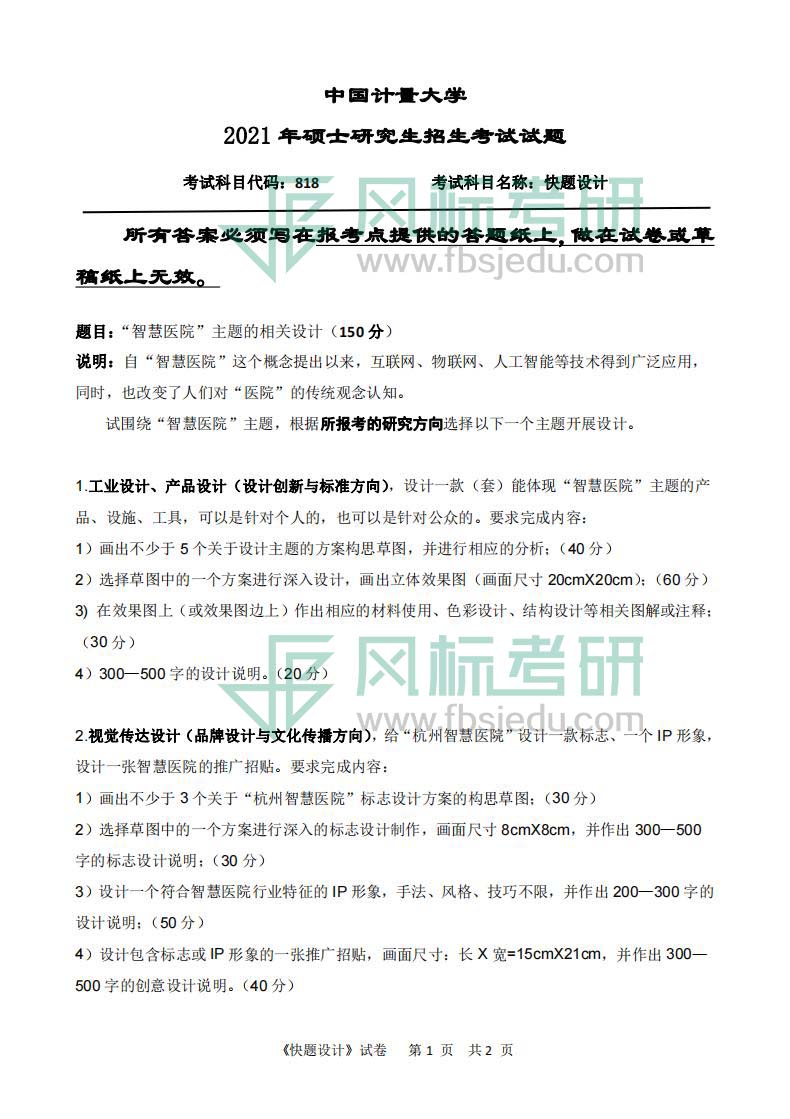中國計(jì)量大學(xué)藝術(shù)與傳媒學(xué)院2021年考研真題:818快題設(shè)計(jì) 發(fā)布時(shí)間:2021-09-13 上一篇:中國計(jì)量大學(xué)藝術(shù)與傳媒學(xué)院2021年考研真題:718藝術(shù)設(shè)計(jì)理論 下一篇:中國計(jì)量大學(xué)2022年考研一志愿考生復(fù)試安排表