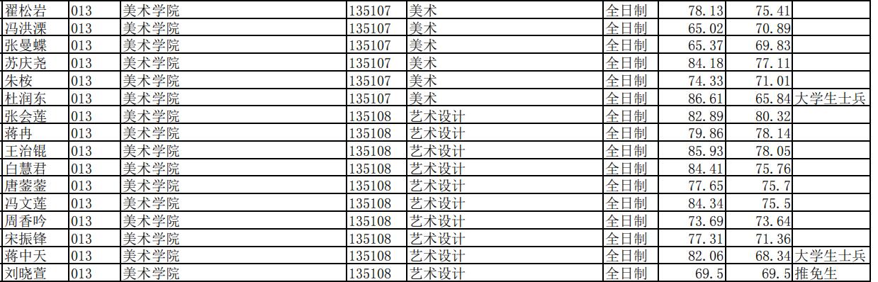 云南師范大學(xué)美術(shù)學(xué)院2021年考研錄取名單 發(fā)布時間:2021-05-25 上一篇:云南師范大學(xué)美術(shù)學(xué)院2021年考研復(fù)試名單公布 下一篇:云南師范大學(xué)美術(shù)學(xué)院2022年考研招生目錄及參考書目