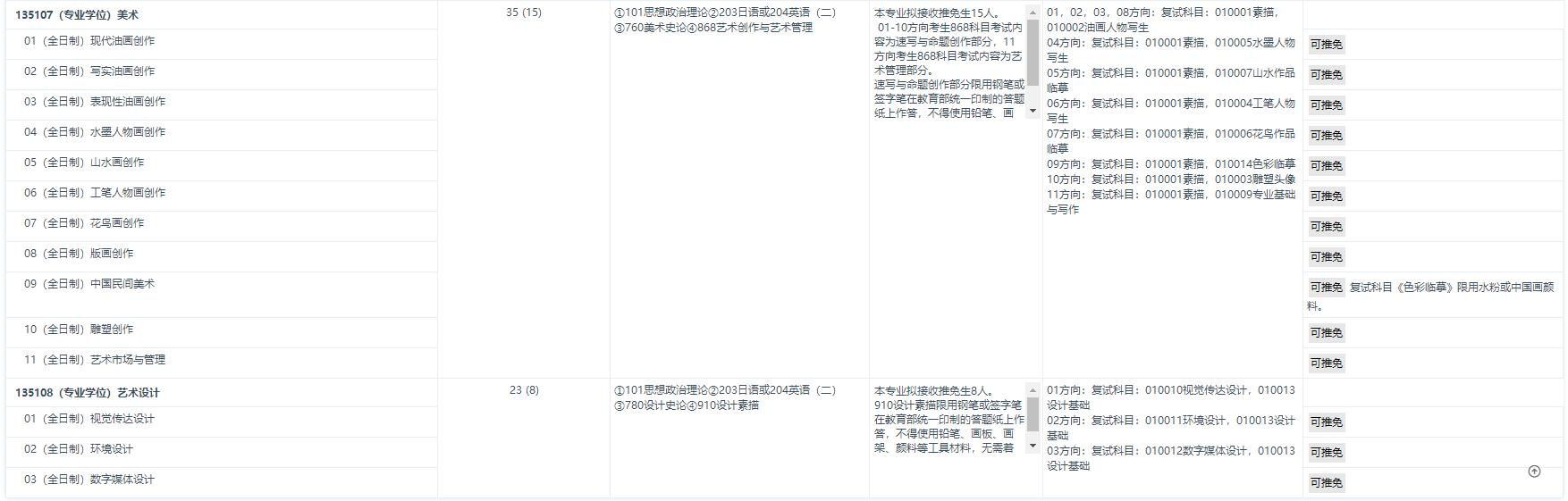 首都師范大學美術(shù)學院2022年考研招生目錄及參考書目 發(fā)布時間:2021-09-14 序號專業(yè)類別及領(lǐng)域學費標準學制學費繳納1全日制學術(shù)型碩士研究生8000元/生/年3年按學制3年繳納。藝術(shù)碩士[含音樂、舞蹈、美術(shù)(美術(shù)、書法)、藝術(shù)設(shè)計]17500元/生/年3年 上一篇:首都師范大學美術(shù)學院2021年考研錄取名單公示 下一篇:首都師范大學關(guān)于2022年考研初試成績查詢等工作的通知