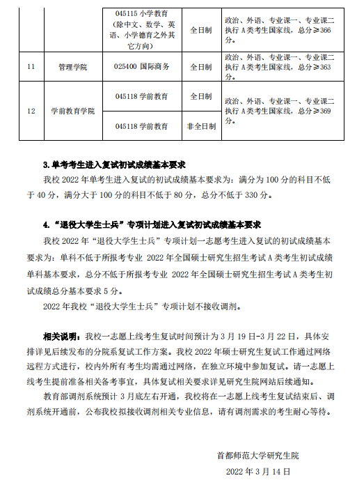首都師范大學(xué)2022年考研復(fù)試分數(shù)線發(fā)布 發(fā)布時間:2022-03-15 首都師范大學(xué)2022年考研復(fù)試分數(shù)線發(fā)布 上一篇:首都師范大學(xué)關(guān)于2022年考研初試成績查詢等工作的通知 下一篇:首都師范大學(xué)2022年考研復(fù)試有關(guān)安排、模擬面試及資格審查工作的說明