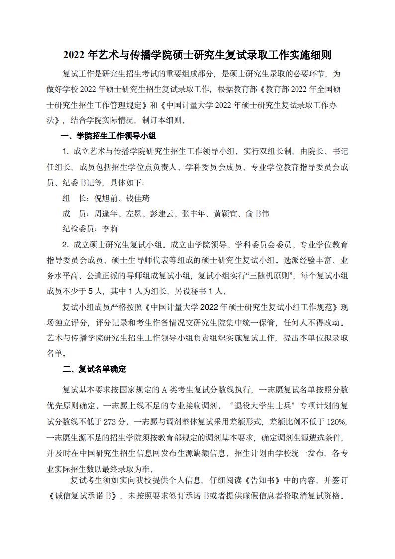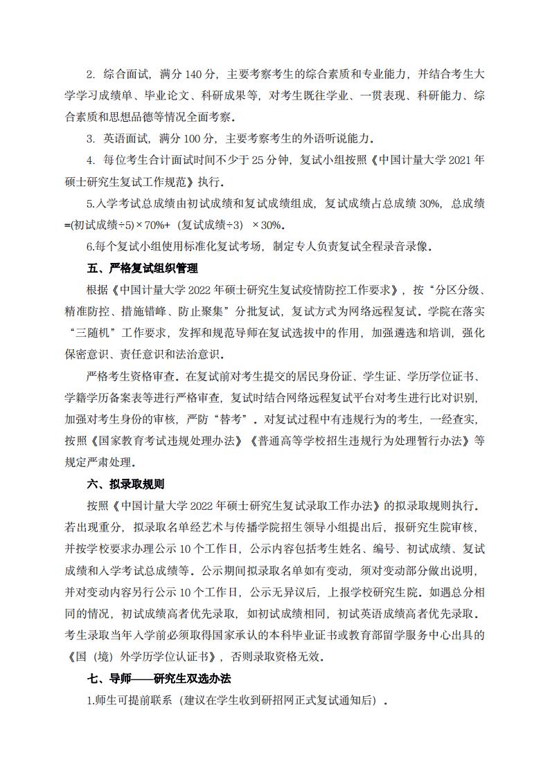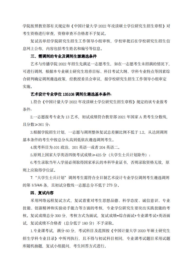 中國(guó)計(jì)量大學(xué)藝術(shù)與傳媒學(xué)院2022年考研復(fù)試辦法 發(fā)布時(shí)間:2022-03-24 中國(guó)計(jì)量大學(xué)藝術(shù)與傳媒學(xué)院2022年考研復(fù)試辦法 上一篇:中國(guó)計(jì)量大學(xué)2022年考研復(fù)試分?jǐn)?shù)線 下一篇:中國(guó)計(jì)量大學(xué)藝術(shù)與傳媒學(xué)院2022年考研復(fù)試名單