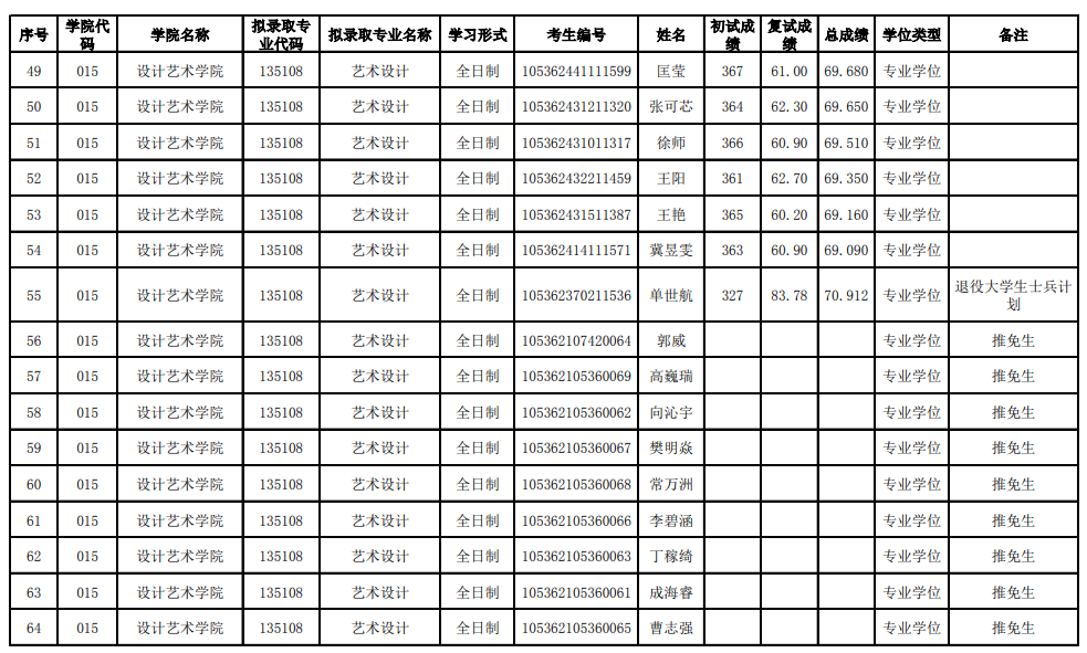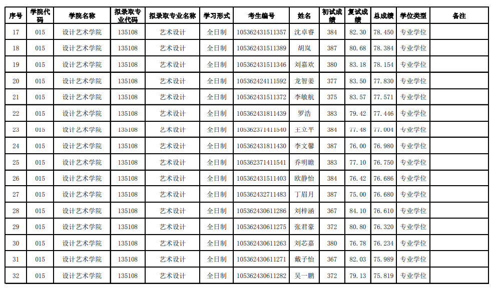 長沙理工大學(xué)設(shè)計藝術(shù)學(xué)院2022年考研(一志愿)擬錄取名單公示 發(fā)布時間:2022-03-31 長沙理工大學(xué)設(shè)計藝術(shù)學(xué)院2022年考研(一志愿)擬錄取名單公示 上一篇:長沙理工大學(xué)設(shè)計藝術(shù)學(xué)院2022年考研復(fù)試工作實施方案 下一篇:長沙理工大學(xué)設(shè)計藝術(shù)學(xué)院2024年考研招生目錄