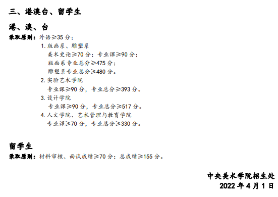 中央美術(shù)學(xué)院2022年考研擬錄取原則 發(fā)布時(shí)間:2022-04-01 中央美術(shù)學(xué)院2022年考研擬錄取原則 上一篇:中央美術(shù)學(xué)院2022年考研初試成績(jī)查詢及復(fù)核通知 下一篇:中央美術(shù)學(xué)院2022年考研擬錄取名單
