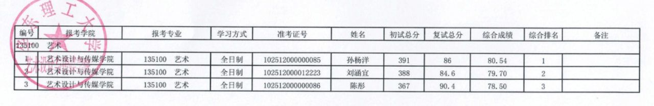 藝術(shù)設(shè)計(jì)與傳媒學(xué)院2022年考研復(fù)試綜合成績(jī)公示 發(fā)布時(shí)間:2022-03-31 藝術(shù)設(shè)計(jì)與傳媒學(xué)院2022年考研復(fù)試綜合成績(jī)公示 上一篇:華東理工大學(xué)2022年考研復(fù)試分?jǐn)?shù)線 下一篇:藝術(shù)設(shè)計(jì)與傳媒學(xué)院2022年考研復(fù)試擬錄取名單公示