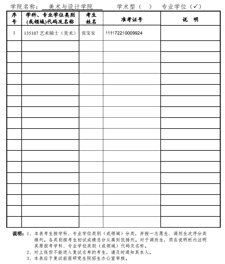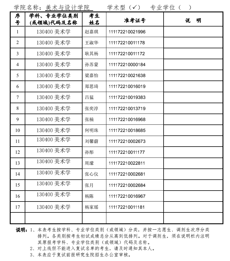 揚州大學美術(shù)與設(shè)計學院2022年考研復試名單 發(fā)布時間:2022-03-19 揚州大學美術(shù)與設(shè)計學院2022年考研復試名單 上一篇:揚州大學美術(shù)與設(shè)計學院2022年考研復試分數(shù)線及招生人數(shù) 下一篇:揚州大學美術(shù)與設(shè)計學院2022年考研(一志愿)復試成績公示(藝術(shù)設(shè)計)