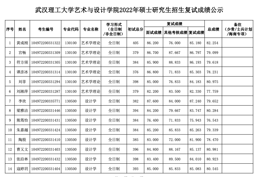 武漢理工大學(xué)藝術(shù)與設(shè)計(jì)學(xué)院2022年考研復(fù)試成績(jī)公示