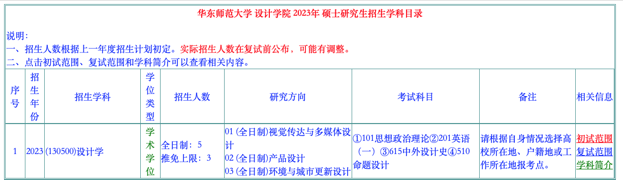華東師范大學(xué)設(shè)計學(xué)院2023年考研招生目錄及參考書目 發(fā)布時間:2022-09-14 華東師范大學(xué)設(shè)計學(xué)院2023年考研招生目錄及參考書目更多考研信息咨詢微信18911516590 上一篇:華東師范大學(xué)設(shè)計學(xué)院2022年考研錄取名單(藝術(shù)設(shè)計) 下一篇:華東師范大學(xué)2023年工業(yè)設(shè)計考研真題(回憶版):615中外設(shè)計史