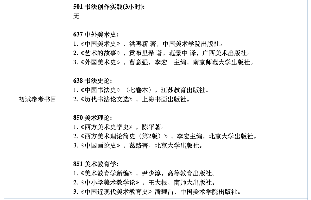 南京師范大學(xué)美術(shù)學(xué)院2023年考研招生目錄及參考書目 發(fā)布時(shí)間:2022-09-15 南京師范大學(xué)美術(shù)學(xué)院2023年考研招生目錄及參考書目更多考研信息咨詢微信18911516590(龔老師) 上一篇:南京師范大學(xué)2022年考研復(fù)試分?jǐn)?shù)線 下一篇:南京師范大學(xué)2023年美術(shù)學(xué)考研真題(回憶版):850美術(shù)理論