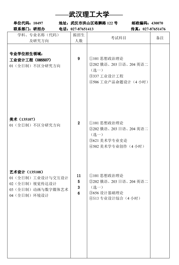 武漢理工大學(xué)藝術(shù)與設(shè)計學(xué)院2023年考研招生目錄 發(fā)布時間:2022-09-23 武漢理工大學(xué)藝術(shù)與設(shè)計學(xué)院2023年考研招生目錄 上一篇:武漢理工大學(xué)藝術(shù)與設(shè)計學(xué)院2022年考研復(fù)試名單公示(調(diào)劑志愿) 下一篇:武漢理工大學(xué)藝術(shù)與設(shè)計學(xué)院2023年保研錄取名單公示