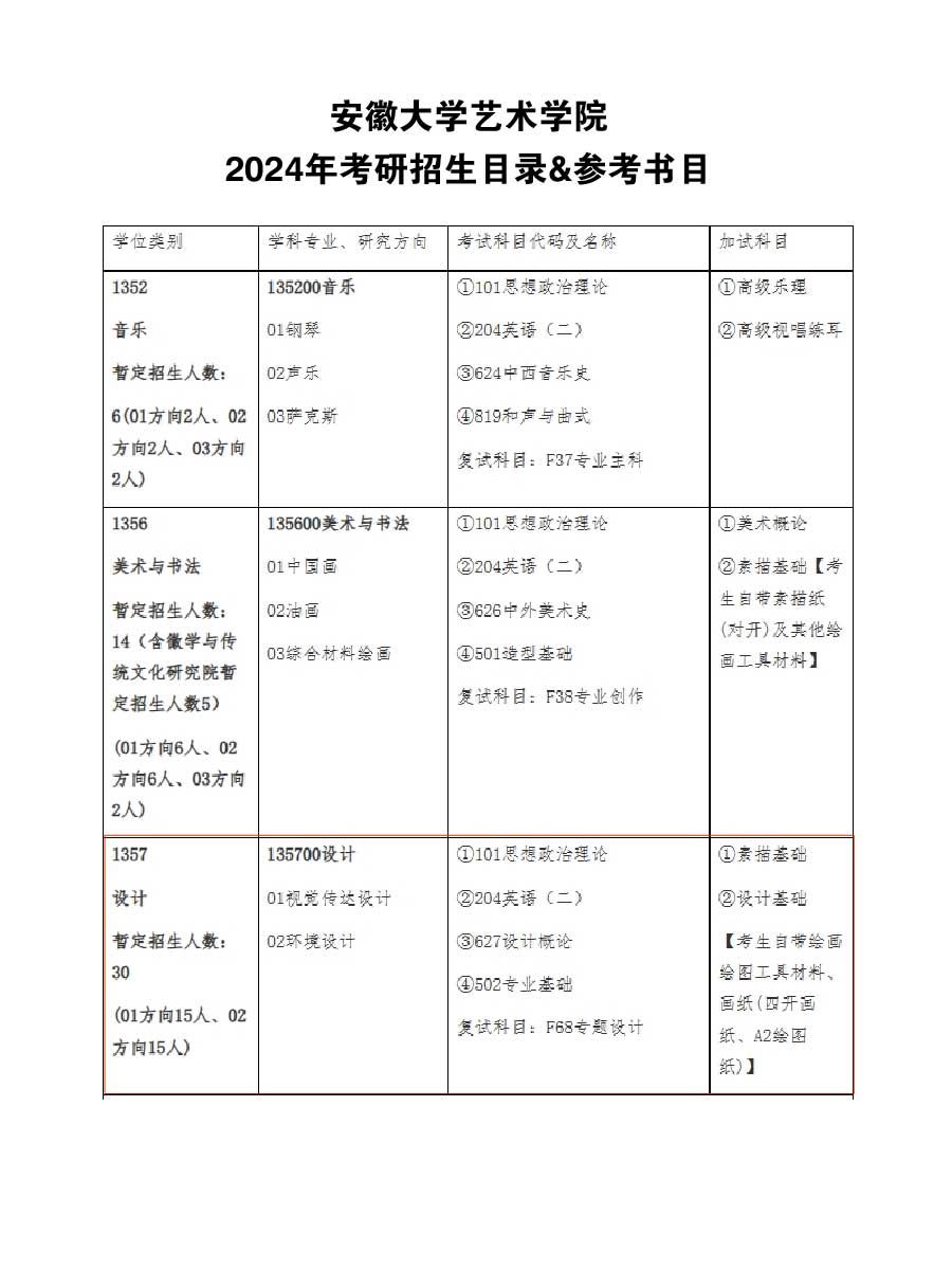 安徽大學藝術學院2024年考研招生目錄及參考書目 發(fā)布時間:2023-09-20 安徽大學藝術學院2024年考研招生目錄及參考書目 上一篇:安徽大學藝術學院2023年考研復試名單公示 下一篇:安徽大學藝術學院2024年考研復試分數(shù)線及招生人數(shù)