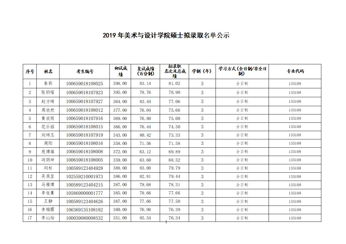 天津師范大學(xué)美術(shù)與設(shè)計學(xué)院2019年考研錄取名單公示