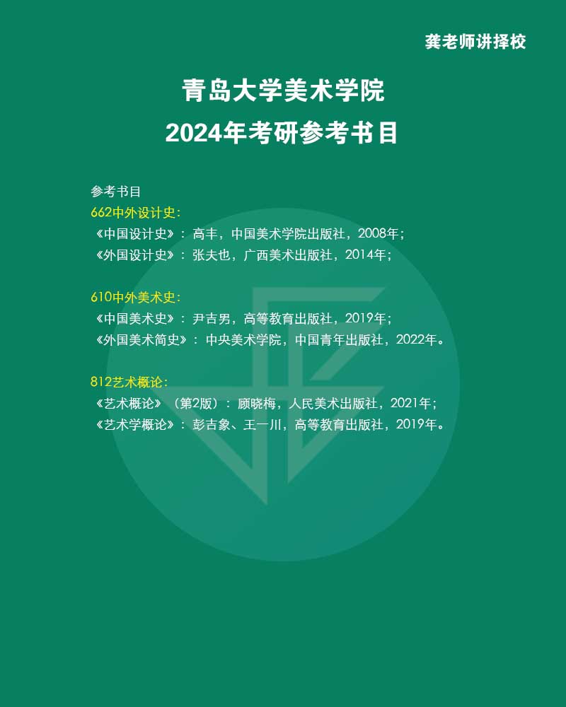 青島大學(xué)美術(shù)學(xué)院2024年考研招生目錄及參考書目 發(fā)布時間:2023-09-20 上一篇:青島大學(xué)工業(yè)設(shè)計工程2024年考研招生目錄及參考書目 下一篇:青島大學(xué)工業(yè)設(shè)計工程2024年考研考試大綱:337工業(yè)設(shè)計工程