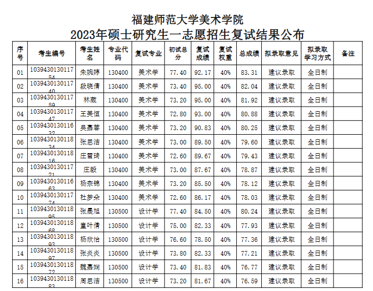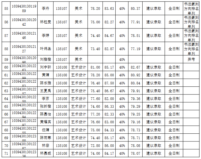 福建師范大學(xué)美術(shù)學(xué)院2023年考研復(fù)試結(jié)果 發(fā)布時(shí)間:2023-04-05 福建師范大學(xué)美術(shù)學(xué)院2023年考研復(fù)試結(jié)果 上一篇:福建師范大學(xué)2022年藝術(shù)設(shè)計(jì)考研真題(回憶版):625設(shè)計(jì)綜合理論 下一篇:福建師范大學(xué)美術(shù)學(xué)院2023年考研調(diào)劑復(fù)試結(jié)果