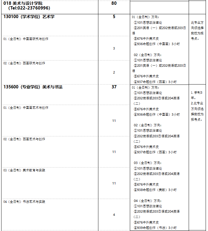 天津師范大學(xué)美術(shù)與設(shè)計(jì)學(xué)院2024年考研招生目錄