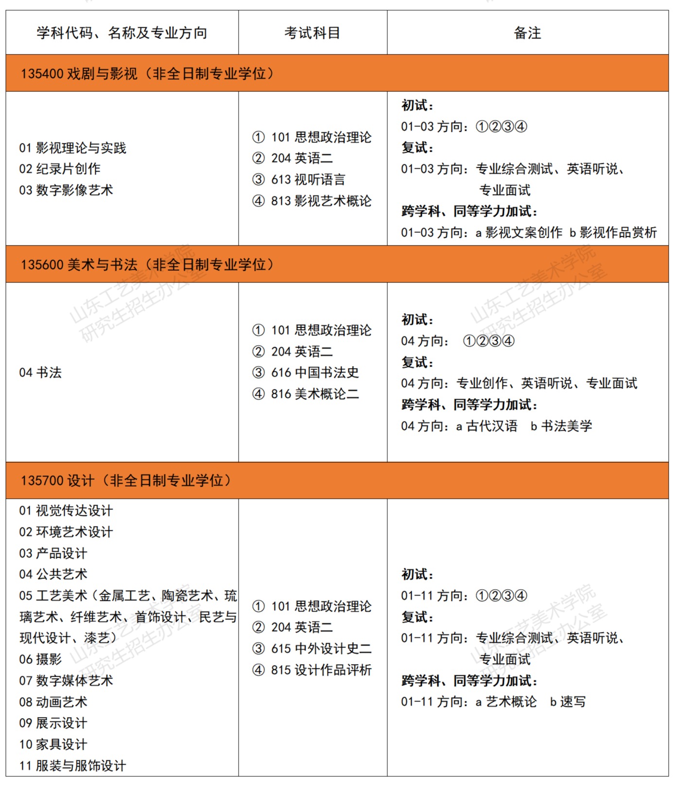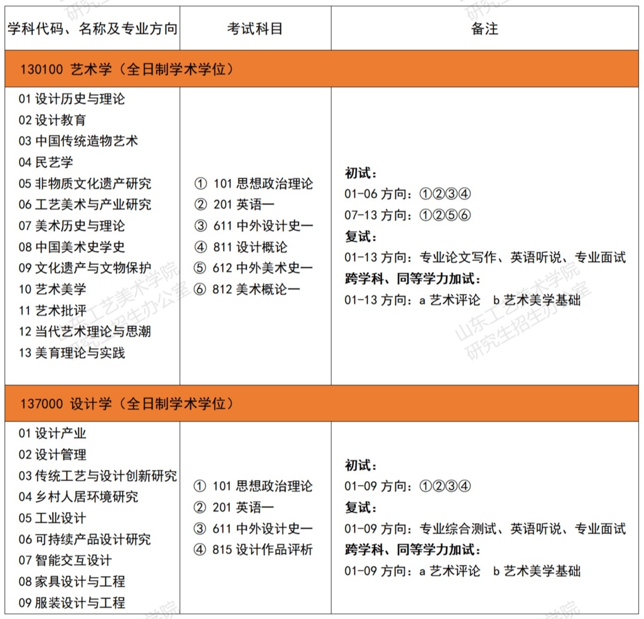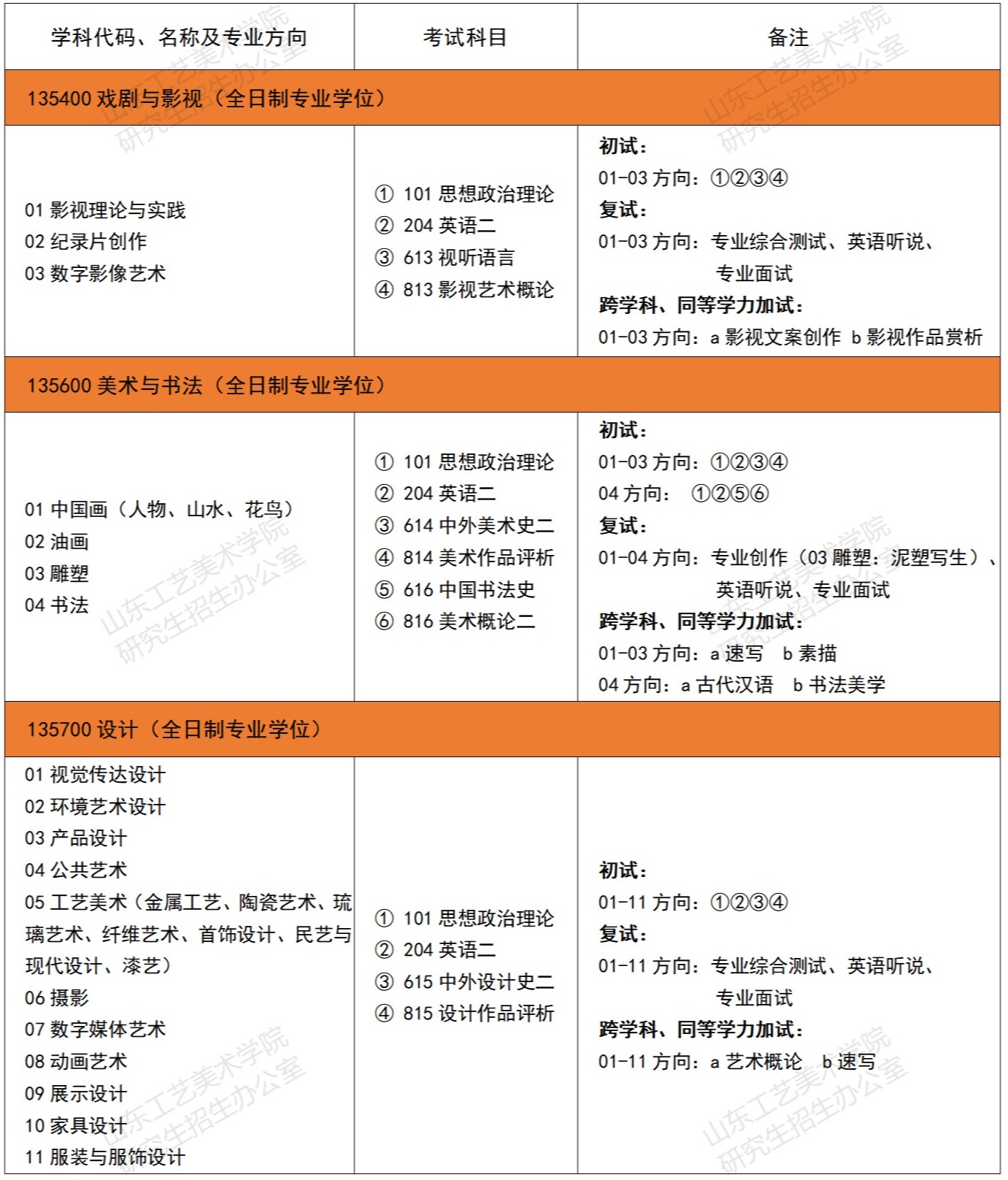 山東工藝美術學院2024年考研招生目錄及參考書目