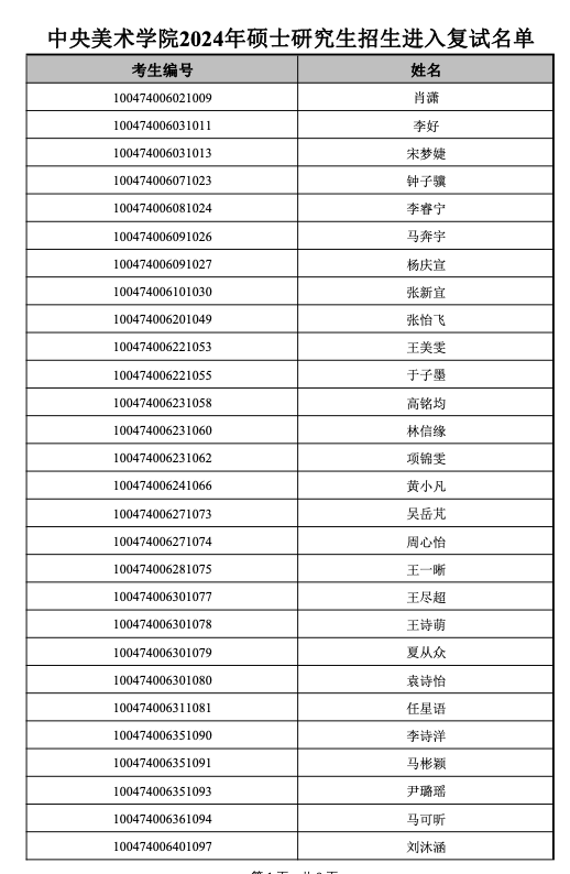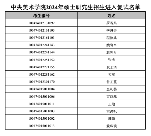 中央美術(shù)學(xué)院2024年考研復(fù)試名單發(fā)布 發(fā)布時(shí)間:2024-03-15 上一篇:中央美術(shù)學(xué)院2024年考研復(fù)試分?jǐn)?shù)線 下一篇:中央美術(shù)學(xué)院2024年考研復(fù)試錄取名單