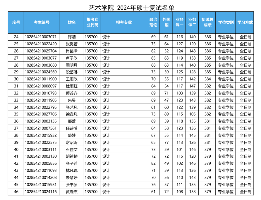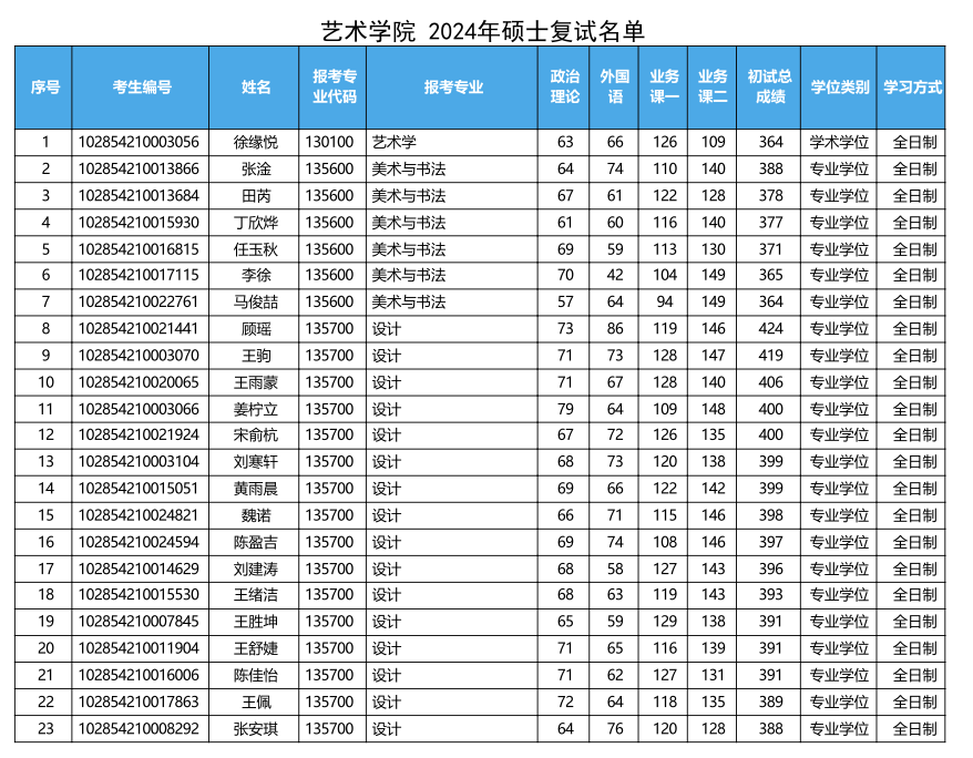 蘇州大學(xué)藝術(shù)學(xué)院2024年考研復(fù)試名單 發(fā)布時(shí)間:2024-03-22 蘇州大學(xué)藝術(shù)學(xué)院2024年考研復(fù)試名單 上一篇:蘇州大學(xué)藝術(shù)學(xué)院2024年考研復(fù)試分?jǐn)?shù)線及招生人數(shù)發(fā)布 下一篇:蘇州大學(xué)藝術(shù)學(xué)院2024年考研錄取名單