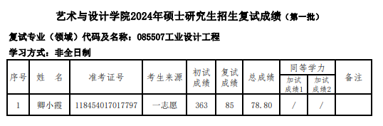 廣東工業(yè)大學藝術(shù)設計學院2024年考研復試成績公示 發(fā)布時間:2024-04-01 廣東工業(yè)大學藝術(shù)設計學院2024年考研復試成績公示 上一篇:廣東工業(yè)大學藝術(shù)設計學院2024年考研復試名單公布 下一篇:廣東工業(yè)大學藝術(shù)設計學院2024年考研復試結(jié)果(調(diào)劑)