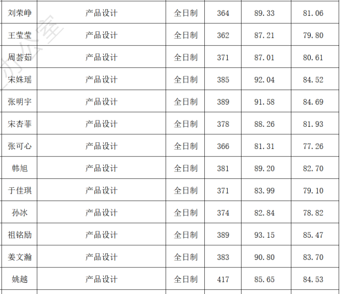 山東工藝美術(shù)學(xué)院工業(yè)設(shè)計(jì)考研2024年考研復(fù)試錄取名單