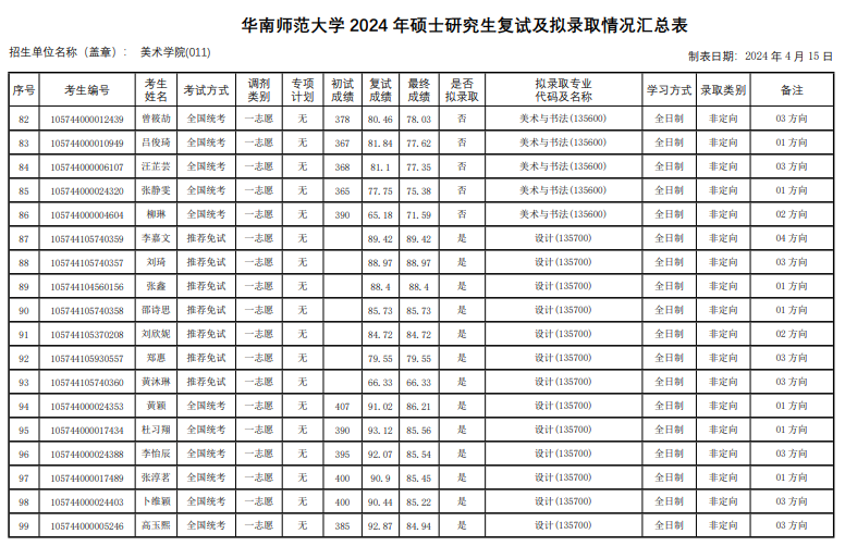 華南師范大學(xué)美術(shù)學(xué)院2024年考研復(fù)試錄取名單 發(fā)布時間:2024-04-15 華南師范大學(xué)美術(shù)學(xué)院2024年考研復(fù)試錄取名單 上一篇:華南師范大學(xué)設(shè)計考研2024年考研復(fù)試名單 下一篇:華南師范大學(xué)美術(shù)學(xué)院2025年保研申請公告