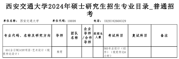 西安交通大學(xué)2024年設(shè)計(jì)考研招生目錄 發(fā)布時(shí)間:2023-09-20 人文社會(huì)科學(xué)學(xué)院西安交通大學(xué)2024年設(shè)計(jì)考研招生目錄 上一篇:西安交通大學(xué)工業(yè)設(shè)計(jì)工程2024年考研復(fù)試分?jǐn)?shù)線(院線) 下一篇:西安交通大學(xué)人文學(xué)院2024年設(shè)計(jì)考研復(fù)試錄取工作細(xì)則