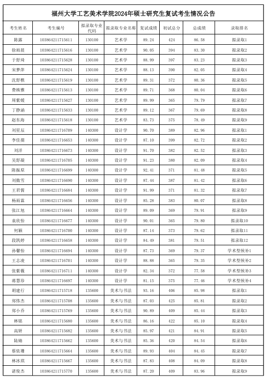 福州大學廈門工藝美術(shù)學院2024年考研復(fù)試考生成績及擬錄情況 發(fā)布時間:2024-04-06 福州大學廈門工藝美術(shù)學院2024年考研復(fù)試考生成績及擬錄情況 上一篇:福州大學廈門工藝美術(shù)學院2024年考研真題分享:857/854設(shè)計基礎(chǔ) 下一篇:福州大學廈門工藝美術(shù)學院2024年考研調(diào)劑復(fù)試考生成績及錄取情況