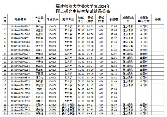福建師范大學(xué)美術(shù)學(xué)院2024年考研復(fù)試結(jié)果公布 發(fā)布時(shí)間:2024-04-02 福建師范大學(xué)美術(shù)學(xué)院2024年考研復(fù)試結(jié)果公布 上一篇:福建師范大學(xué)美術(shù)學(xué)院2024年考研真題分享:625設(shè)計(jì)綜合理論 下一篇:福建師范大學(xué)美術(shù)學(xué)院2025年保研申請(qǐng)通告